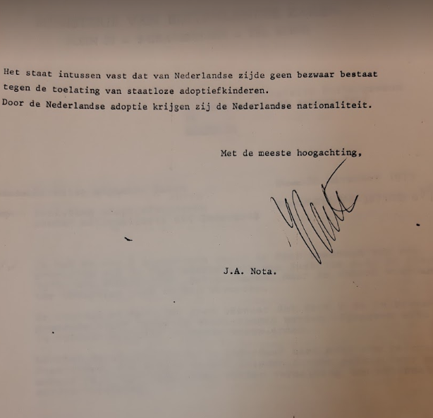 Letter Nota to Van Deth - Stateless children Indonesia (Chinese population)