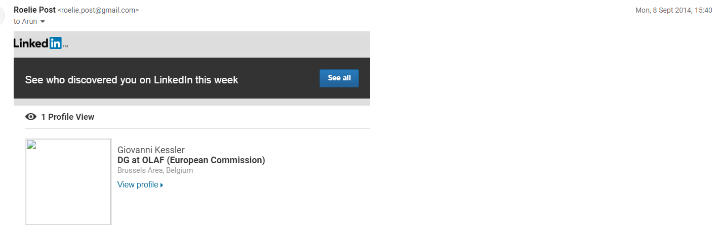 Kessler watched RP's LinkedIn Document type: News paper article Publication date: 8 September 2014 .Organizations: OLAFPersons: Giovanni Kessler Attachments Kessler LinkedIn Sept 2014.png (28745 Bytes)