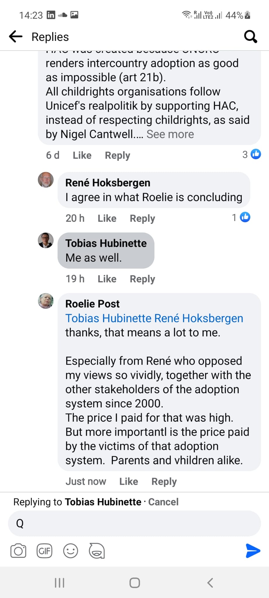Especially from René who opposed my views so vividly, together with the other stakeholders of the adoption system since 2000.