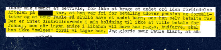 And in a letter, Grete Buhr later writes that she had been arguing with the orphanage in Beirut where 'Johnny' was. The argument was about the payment for the boy, who Grete Buhr believed should be free of charge.