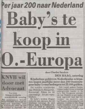 Baby's te koop in Hongarije Source: resolver.kb.nl Publication date: 13 November 1993 De Telegraaf13-11-19933Countries: Netherlands, Hungary Attachments Hongarije 1993.jpg (18092 Bytes) Hongarije 2.jpg (27693 Bytes)