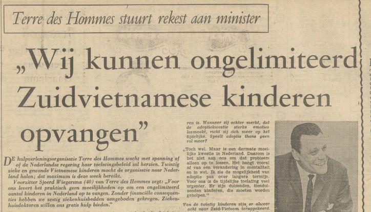 Wij kunnen ongelimiteerd Zuidvietnamese kinderen opvangen Source: resolver.kb.nl Publication date: 1 March 1968 Countries: Vietnam, NetherlandsOrganizations: Terre des Hommes Netherlands Attachments Zuid Vietnam.jpg (65842 Bytes)