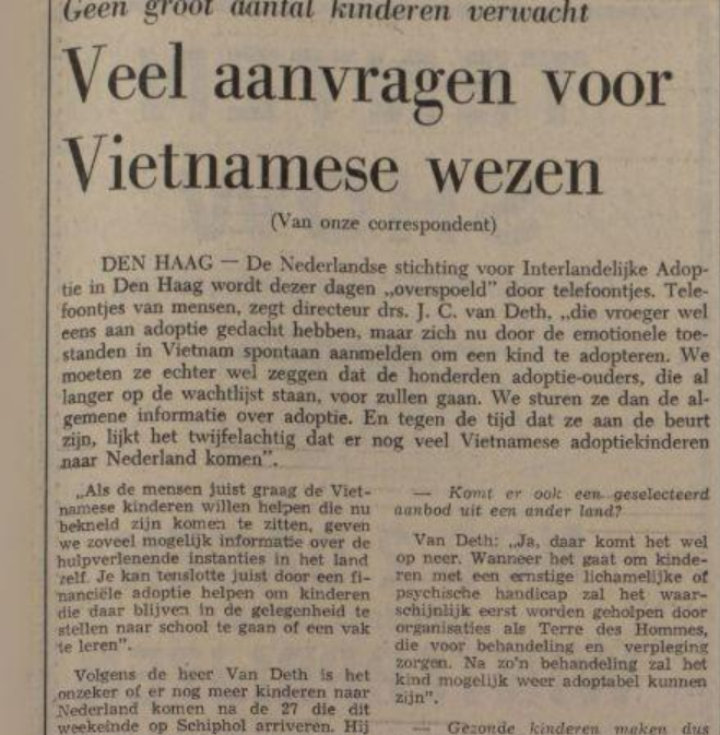 Veel aanvragen voor Vietnamese wezen (geronselde kinderen?)